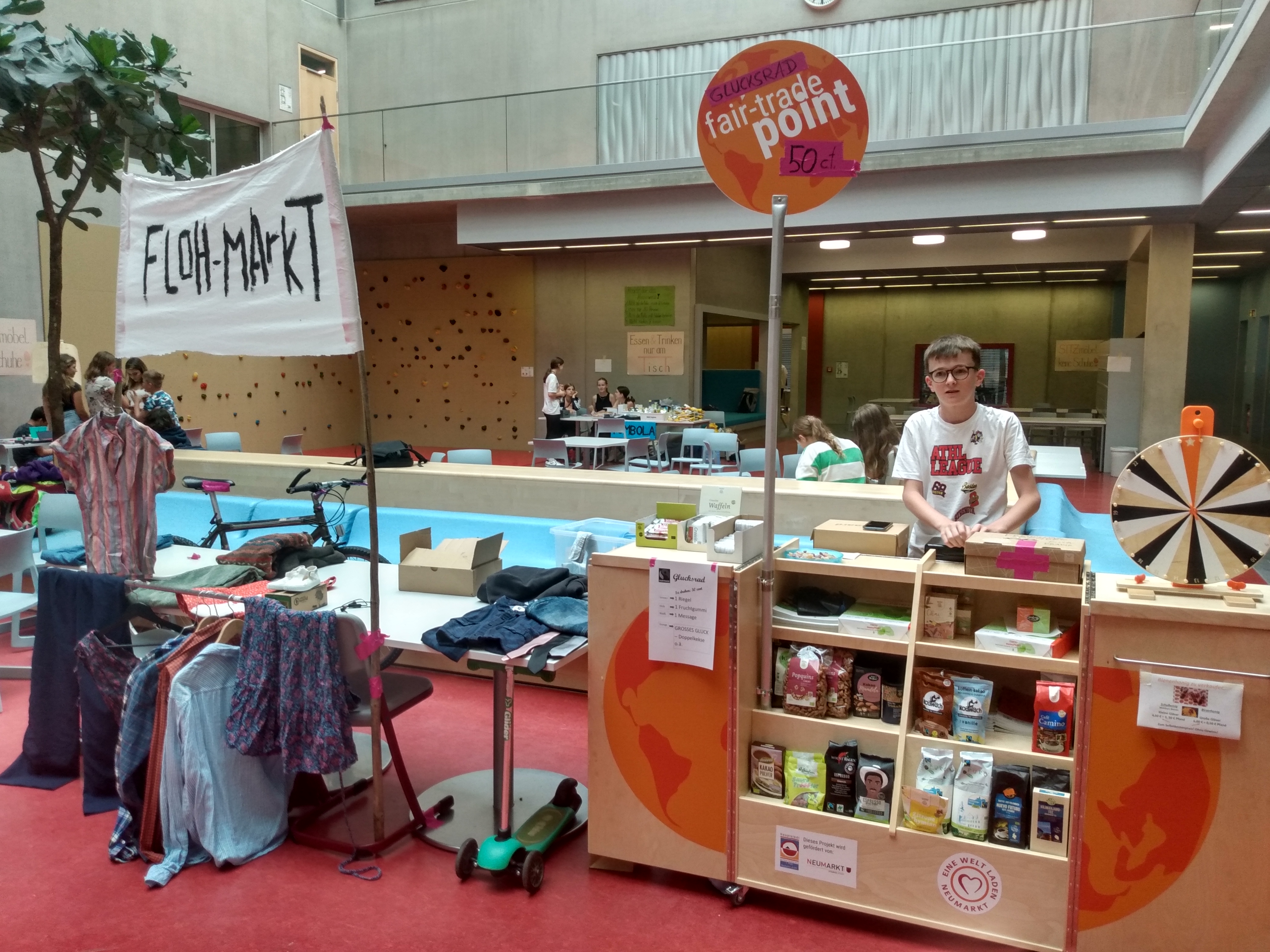 Flohmarkt und Skibasar (von SchülerInnen des WGG für SchülerInnen des WGG): Aussortiertes, Gebrauchtes findet neue LiebhaberInnen und somit werden Neuproduktion, Ressourcenverschwendung, weiter Transport und für die Käufer hohe Kosten gespart!